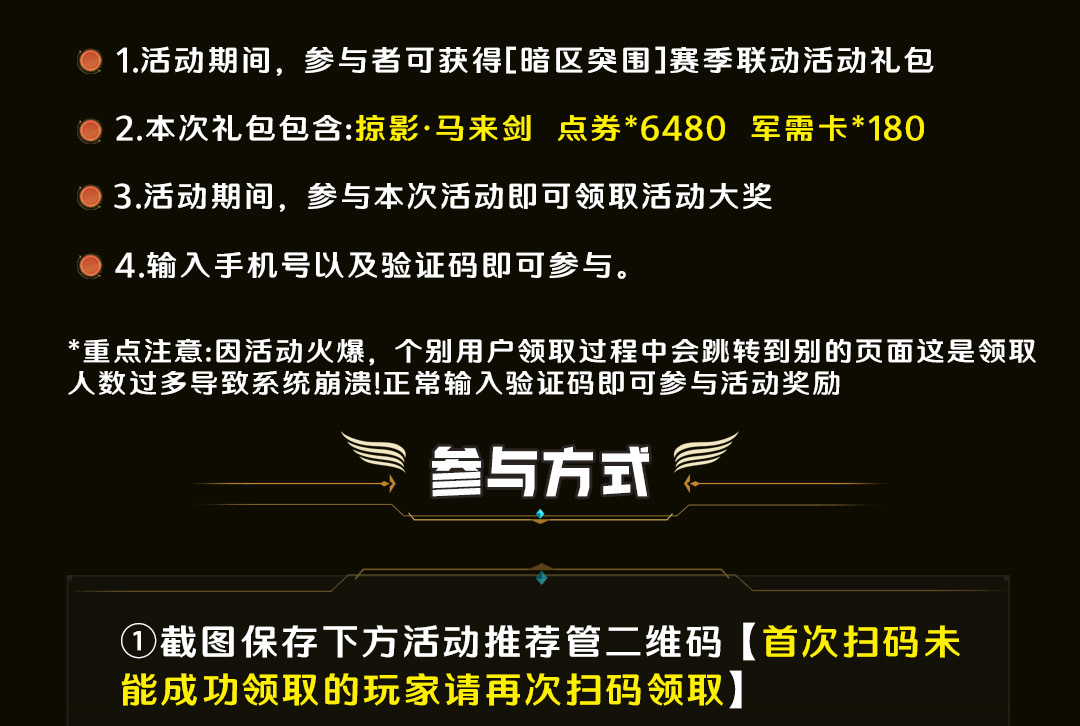 领取成功,恭喜获得掠影 马来剑 点券*6480 军需卡*180 兑换码(S56DG88DF5D6)请复制游戏内邮箱领取!
